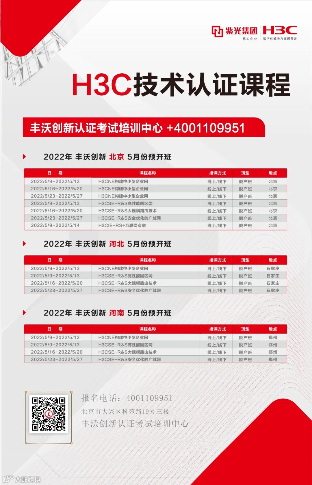 【5月】H3C技术认证课程表新鲜出炉