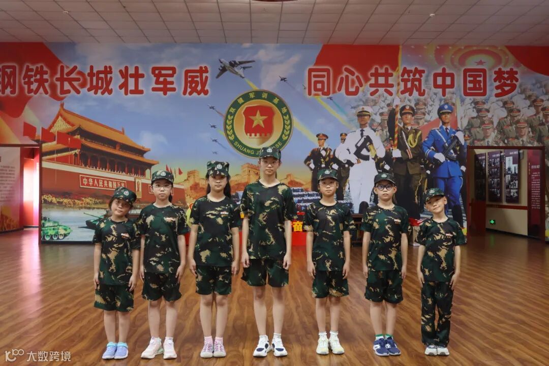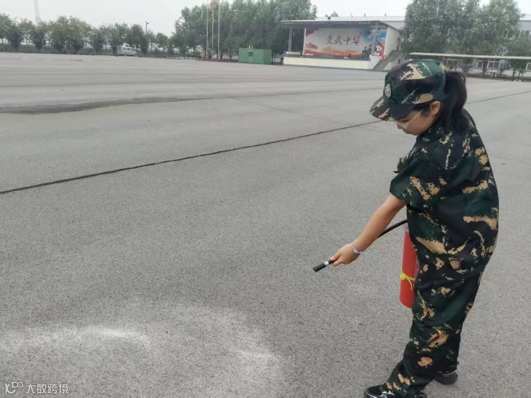 孩子们身穿迷彩服,在教官的带领下完成队列训练
