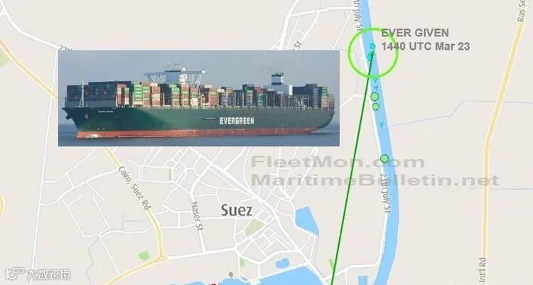 AIS信息显示,该轮船长400米,船宽59米,吃水15.7米,运力为20388TEU,是目前世界最大级别的集装箱船舶。而目前苏伊士运河扩建后宽313米,长190千米,深24米。亚欧航线“大动脉”恐是堵上了。