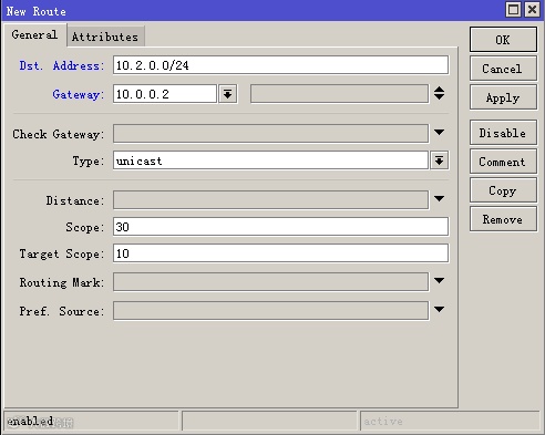 在ROS-B路由器,IP --> Routes --> +,添加一条静态路由