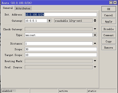 Gateway:10.0.0.1 (因为通过ROS-A中转,所以要填写ROS-A L2TP IP地址)