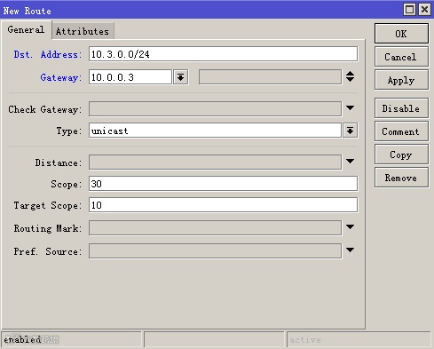 在ROS-C路由器,IP --> Routes --> +,添加一条静态路由