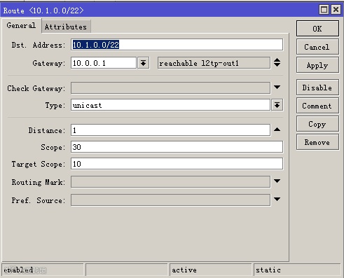 Gateway:10.0.0.1 (ROS-A L2TP IP地址)