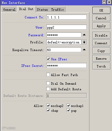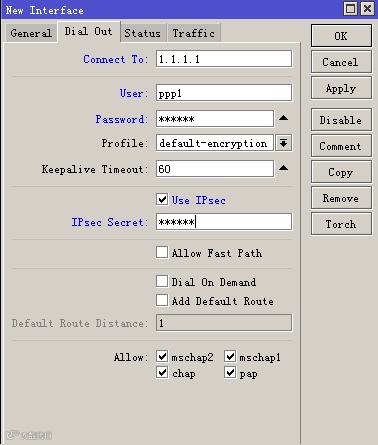 Remote Address:pptp-pool(刚才建的VPN地址池)