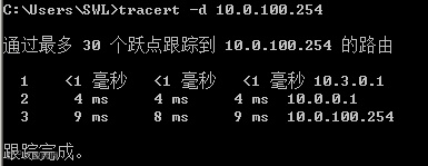 通过Tracert追踪,可以看到已经可以到达ROS-C下的电脑10.3.0.254,中间通过了10.0.0.1,也就是ROS-A