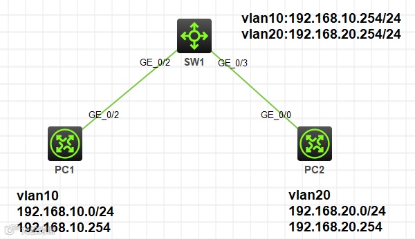 [H3C-GigabitEthernet1/0/1]port trunk permit vlan 1 10 20 放行valn10 vlan20