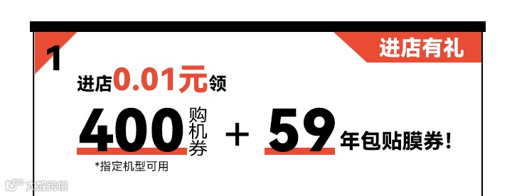导读:0.01元购指定机型400元优惠券+价值59元年包券