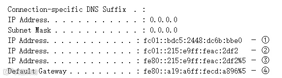④ 自动生成的默认网关,此处为直连路由器接口的链路层地址。
