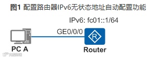 PC直连Router的接口后可通过协议自动获取IPv6地址,并自动生成默认网关,从而使PC与路由器可以自动连通。具体到该试验中,在路由器使能RA(Router Advertisement,路由器通告)后,PC能够根据接收到的RA报文自动配置地址,且能生成指向该路由器的默认路由。