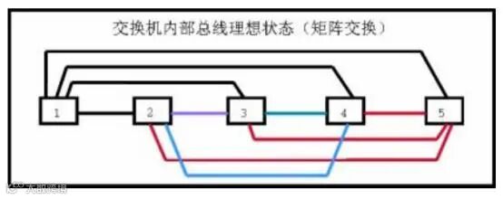 因为,事实上出于造价,很少有交换机可以达到我们上图中的所谓“矩阵式交换”的能力,因为大家从图上也可以看到,为了让端口间绝对的存在可利用通路,每个端口都要预留到任何一个端口的线路,这种全矩阵交换机的模型实现起来造价非常昂贵,因为要利用大量的 CPU 和内存,这种工作方式的交换机动辄要价会达到几十万人民币,普通网络环境根本无法使用。