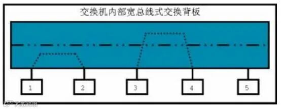 宽总线式交换机是在交换机主板上预留一条“数据总线”,就像一条大家公用的公路,每个端口都可以利用其其中一部分带宽,假如这个总线带宽为 200 兆的话,也就是说最多同时是允许 2 组 100 兆端口同时可以通讯,其余端口如果也要通讯还是需要等待的,因为带宽已经分配完毕了。