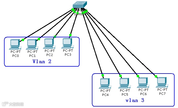 VLAN网络可以是有混合的网络类型设备组成,比如:10M以太网、100M以太网、令牌网、FDDI、CDDI等等,可以是工作站、服务器、集线器、网络上行主干等。