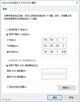 步骤7:单击选中“使用下面的IP地址(S):”单选按钮,根据图1-1中标注的计算机的IP地址完成配置,在“IP地址”文本框中输入192.168.0.1,“子网掩码”由网络前缀/24转换成255.255.255.0,“默认网关”配置成与该计算机直连的路由器的接口的IP地址(路由器R1的f0/0接口的IP地址)192.168.0.254,如图1-15所示。