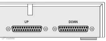 要注意的是只有可堆叠交换机才具备这种端口,所谓可堆叠交换机,就是指一个交换机中一般同时具有"UP"和"DOWN"堆叠端口(如图)。
