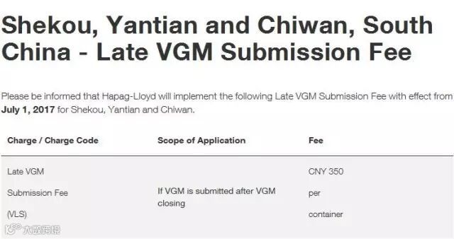 导读:赫伯罗特(Hapag-Lloyd)在官网发布了公告,从7月1日起,针对深圳港口(盐田,蛇口,大铲湾),如