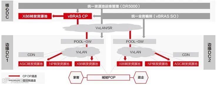 ● DC归一化:Pool-GW作为DC的入口和出口,对CR和POP屏蔽DC内组网和资源的变化,减少对现网的影响。