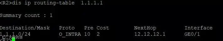 通过这样一条命令 [R2]dis multicastrpf-info 1.1.1.1 检查RPF邻居信息,可以看到是R1,跟上图单播路由表的下一跳一致。