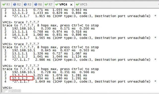 当E0/2线路故障或接口down,PC5从R2出去,转换成12.1.1.1
