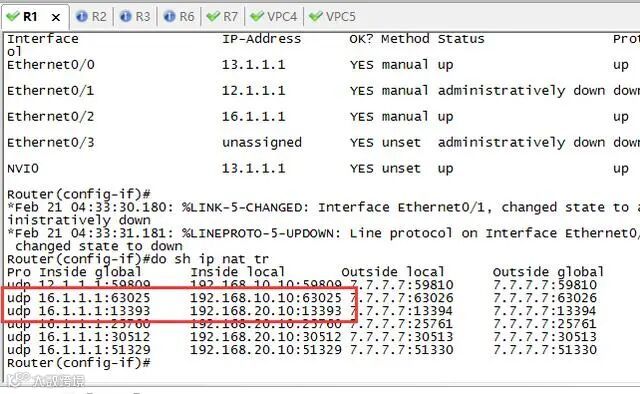 当E0/1线路或故障接口down,PC4从R6出去,转换成16.1.1.1