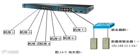 均要求能访问这4台服务器,网络拓扑图如图13-7所示。经研究,可以通过配置三层交换机以实现以上要求。