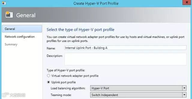 Uplink Port Profile上行端口配置文件,配置虚拟交换机将连接那些逻辑网络(虚拟网络)。这里Network configuration可以详细到站点与逻辑网络的组合,本质上是决定哪些物理服务器参与连接逻辑网络,哪些逻辑网络参与连接虚拟交换机。