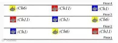 此时在2楼部署的3个AP的信道就应该划分为11/1/6,同理3楼为6/11/1。