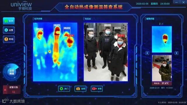 针对疫情中体温监测的需求,浙江宇视科技有限公司推出了热影系列(即全自动热成像测温筛查系统),采用非接触式体温测量方式,用于对出入口行人进行快速测量,及时发现体温异常人员,执行快速干预手段,防止病毒疫情在公共场所下出现大范围感染人员扩散的危险。