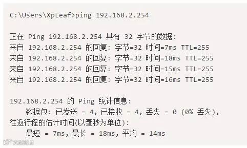我们可以在自己的电脑上自己ping网关的地址,看是否有响应: