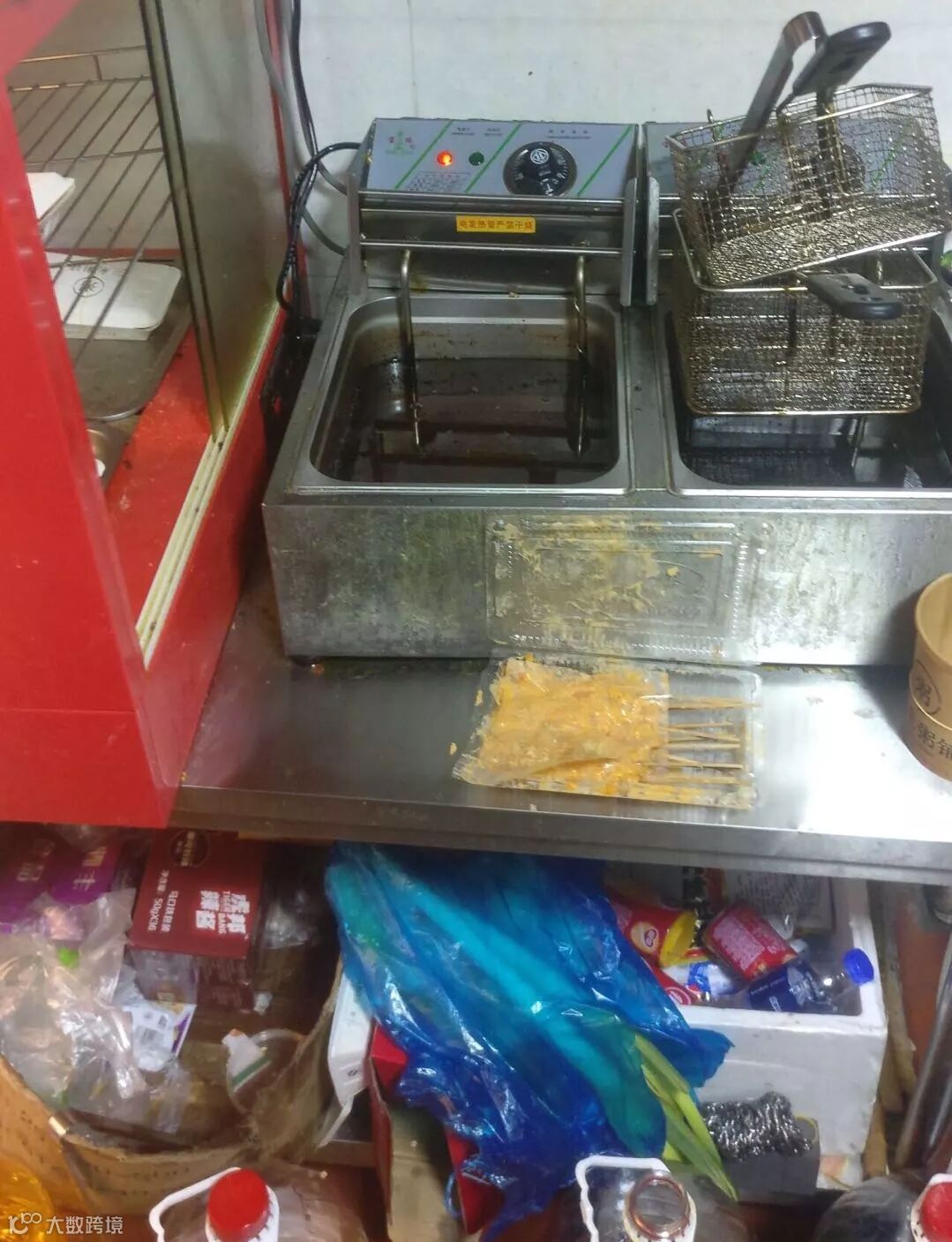 油炸的油桶和不用的垃圾堆放在脚边,而厨具上的油渍早就被反复炸到凝结。