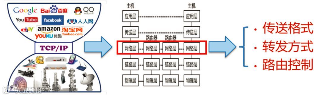 网络层定义了两个终端之间的连接,并为分组数据包选择优化的传输路径;