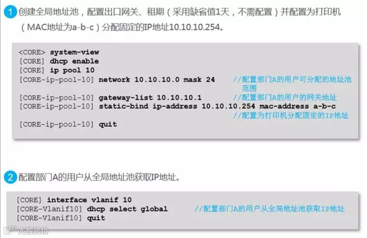 3、核心交换机作为 DHCP Server ,为园区用户分配IP地址 。