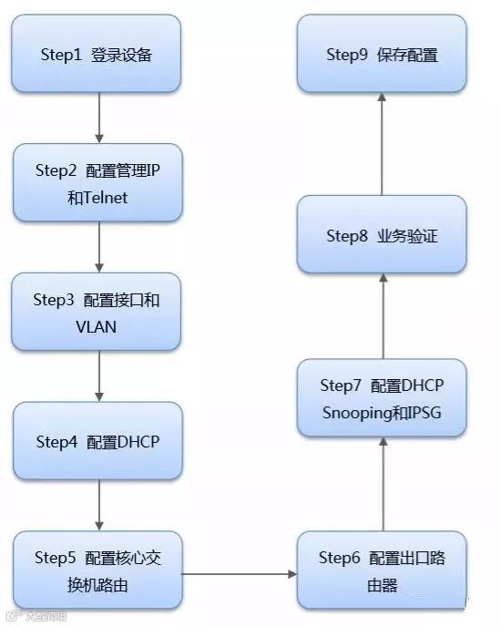 标准的交换机配置是需要这九个步骤,算是比较全的,按照步骤配置可以降低出错的机率。