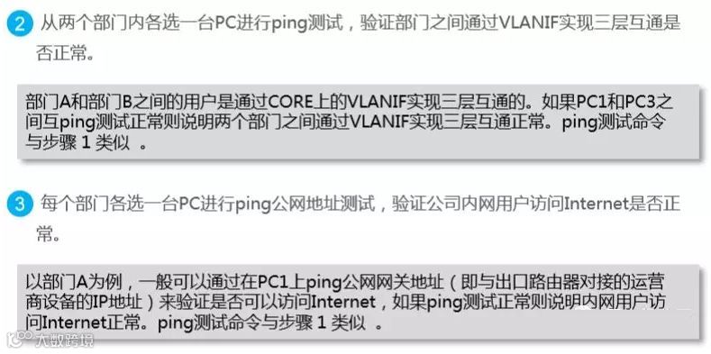 2、每个部门业务划分到一个 VLAN 中,部门间的业务在核心交换机上三层互通。