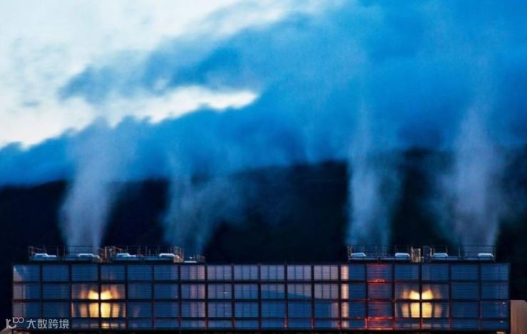 俄勒冈的达勒斯数据中心,蒸汽从冷却塔里冒出