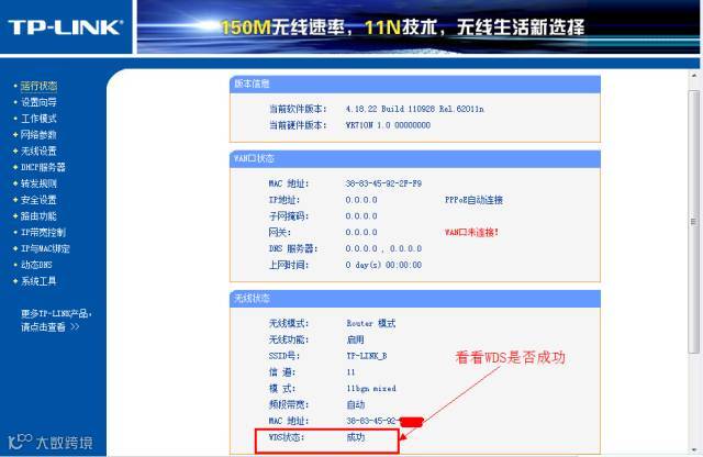 注意:主路由器不能开启WDS,否则会导致主路由器故障