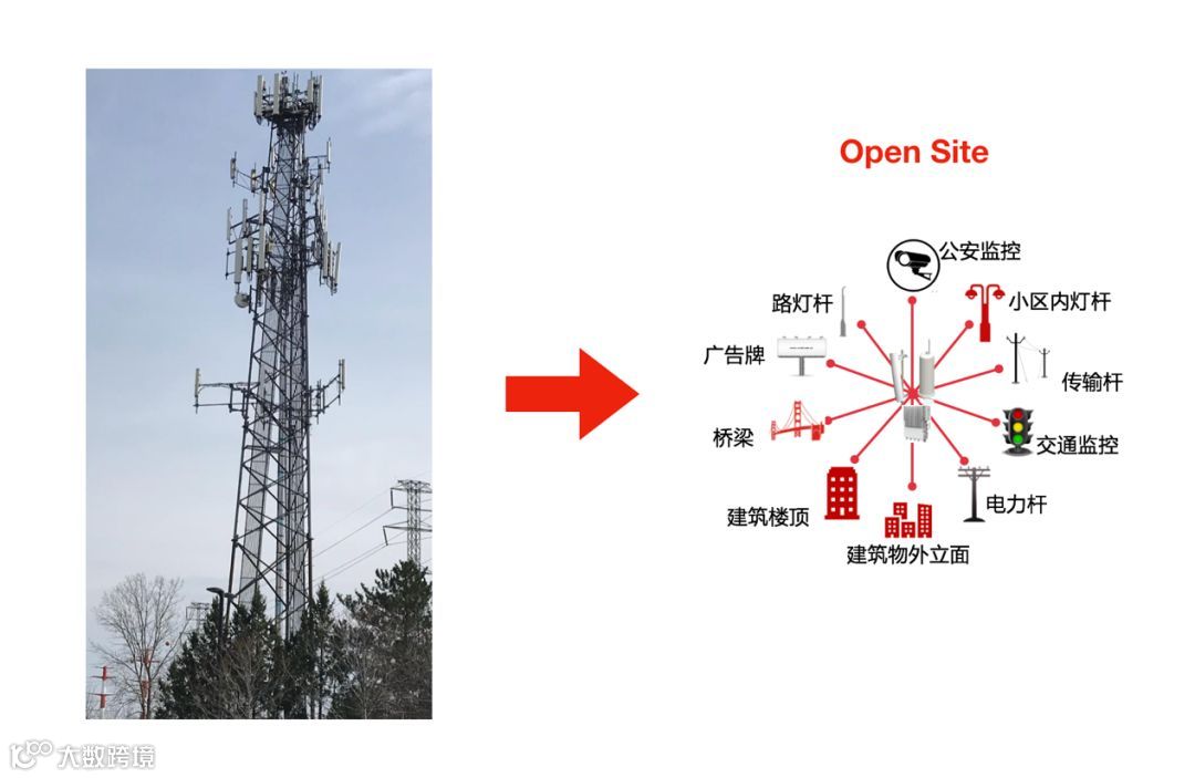Open Site 就是让基站设备走出传统封闭的机房,走向路灯杆、广告牌、建筑物外立面、电力杆、监控杆等各种社会资源。