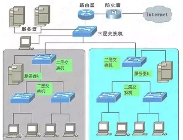 这里的三级并不是说只能允许最多三台交换机,而是从层次上讲只能三个层次。连接在同一交换机上不同端口的交换机都属于同一层次,所以每个层次又能允许几个,甚至几十个交换机级联。层级联所用端口可以是专门的UpLink端口,也可以是普通的交换端口。有些交换机配有专门的级联(UpLink)端口,但有 些却没有。如果有专门的级联端口,则最好利用,因为它的带宽通常比普通交换端口宽,可进一步确保下级交换机的带宽。如果没有则只能通过普通交换端口级联了。