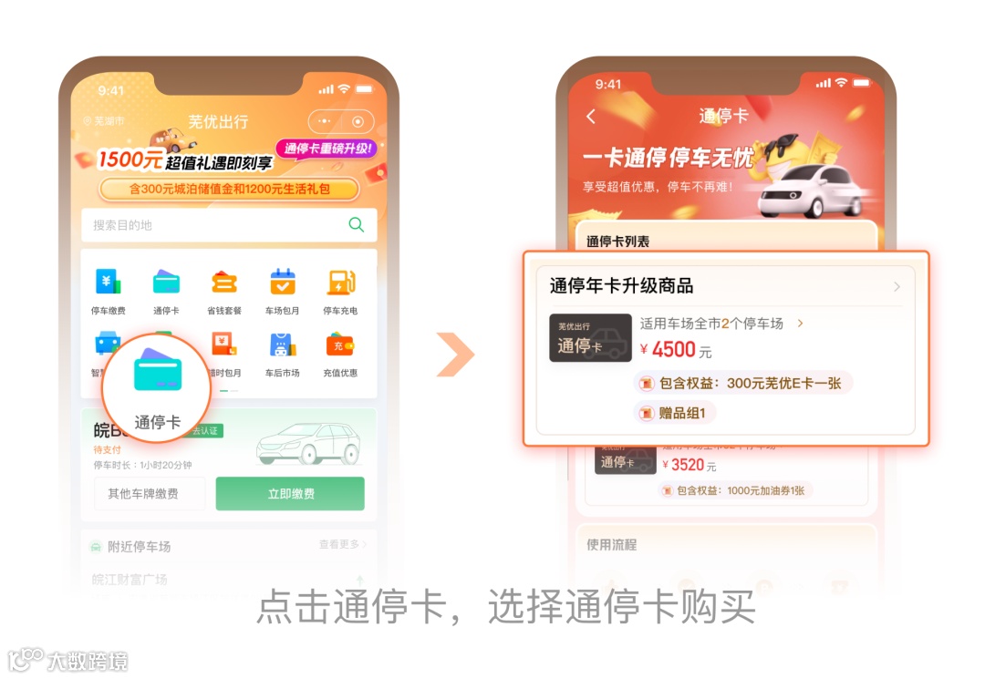 第一步:进入芜优停车首页,点击购买场库通停年卡