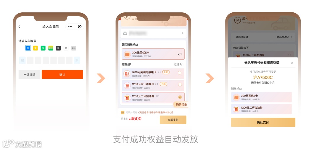 第二步:输入并核对购买通停的车牌号码,请确认好办理的车牌号哦,完成支付,支付成功后通停卡权益自动发放,可自行领取相关权益
