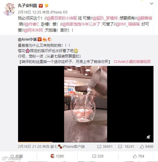 虽然每年樱花季,星巴克的限量主题杯都会刷屏,但能成为现象级爆款的,还是只有今年的“猫爪杯”,杯子本身抓住近年来火热的“猫”元素,而且在注入牛奶后显现出的可爱猫爪,这瞬间戳中了不少人的萌点。