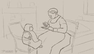 “你看你,又画到外面去了!这个地方妈妈帮你画。”