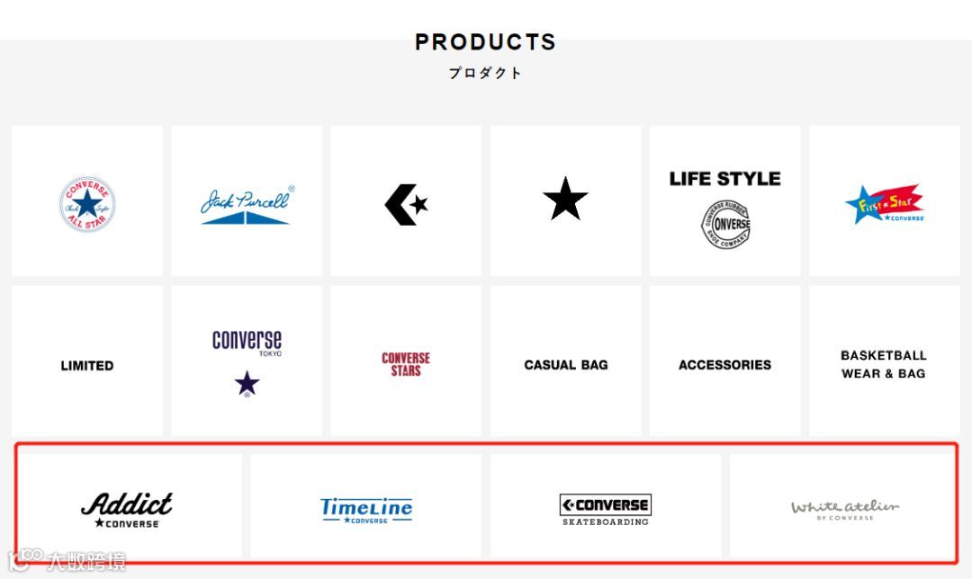 根据官网展示,Converse Japan 目前拥有 4 大支线,分别为:White Atelier、Skateboarding、TimeLine、Addict: