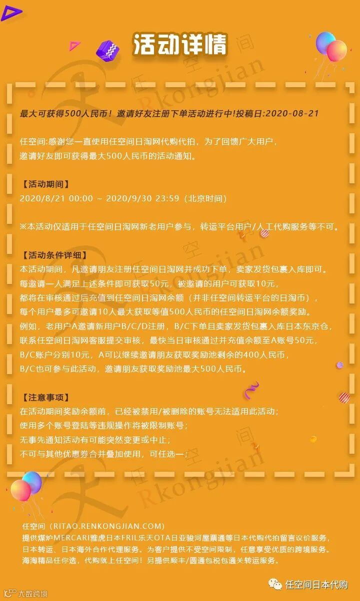※本活动仅适用于任空间日淘网新老用户参与,转运平台用户/人工代购服务等不可。