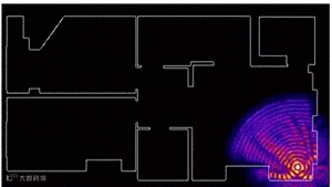 你可以看到WiFi信号不但要遭受墙壁的反射,还会因墙壁或其他障碍物阻挡而变得越来越弱,室内信号不能到达的覆盖盲区也是清晰可见的。