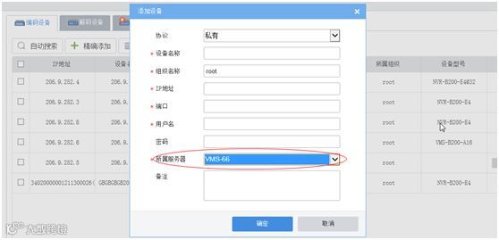 在【设备管理】中在进行编码设备添加时,新增服务器选项,在此可以选择将设备添加的服务器。当添加的设备所属服务器为从机时,主机和从机的数据库中都保存该设备信息