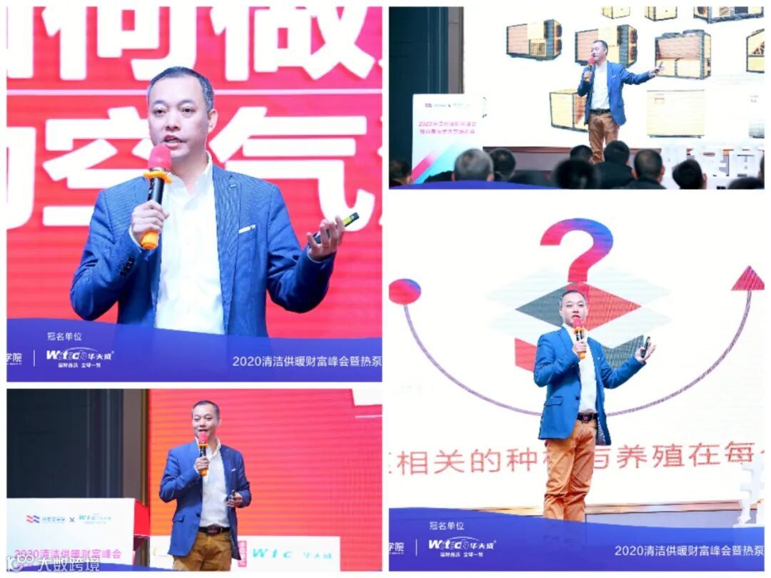 12月12日上午,2020清洁能源财富峰会暨热泵技术大型培训会在济南西城泉盈酒店正式开幕,出席并作为开场演讲嘉宾的是广东华天成新能源科技股份有限公司的董事长郭建毅先生,他分享的主题是《空气源热泵在农业领域的应用》。