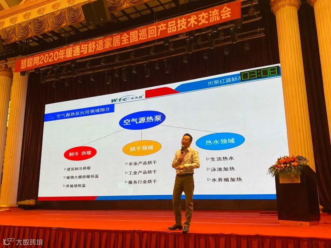 自2005年成立至今,华天成一直在不断探索空气源热泵市场的应用,在甘肃、宁夏、山西、山东、河南、河北等地建立了包括建筑采暖、生活热水、禽畜养殖、农业烘干、大棚供暖、渔业养殖、泳池加热等众多应用案例,为业界所熟知。华天成市场总监谭美华现场重点展示了华天成在生猪养殖供暖、鸡场养殖供暖、虾池恒温养殖、桑葚烘干、花椒烘干、污泥烘干等应用案例,成熟的案例示范和商业模式展示吸引了现场众多经销商的目光。