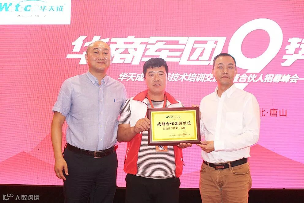 会议现场,华天成董事长郭建毅与唐山聚恒环保科技有限公司总经理赵杰共同为华天成唐山运营中心揭牌,这意味着,唐山聚恒环保科技有限公司将与华天成携手,共同布局唐山热泵市场。