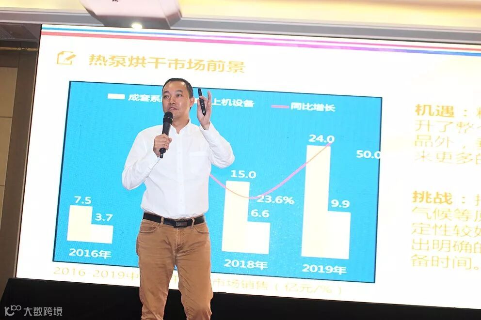 与此同时,华天成董事长郭建毅结合自己多年热泵从业经验,现场讲解了华天成烘干产品技术应用,让大家对热泵烘干产品及应用有了更深入的认识。郭建毅从市场前景、工程区别、系统组成、案例分析四个方面进行了系统讲解。目前,热泵烘干已涵盖农业、工业、服务业等多个领域,垂直细分领域的热泵应用也为经销商带来更多的市场机遇。
