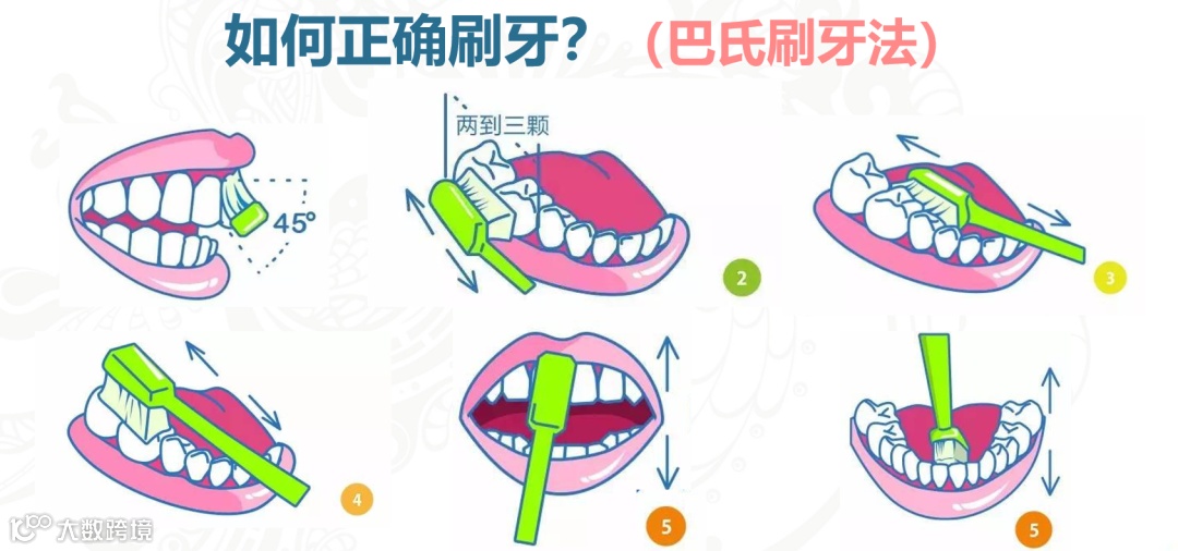 巴氏刷牙法(成人):正确仔细地刷好牙齿的各个面。